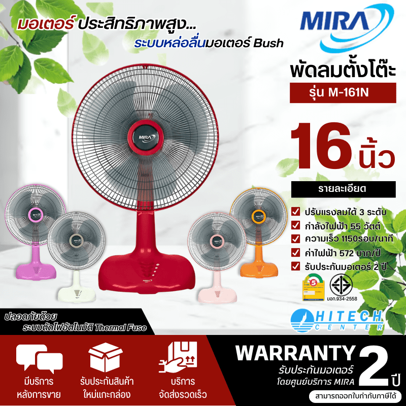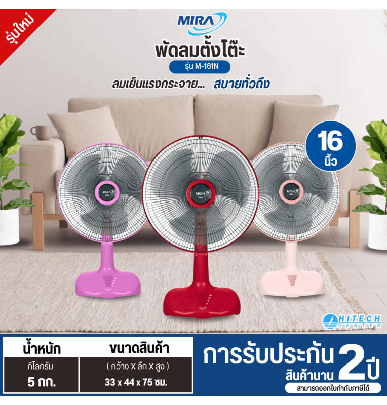 MIRA พัดลม มิร่า พัดลมตั้งโต๊ะ ใบพัด 16 นิ้ว รุ่น M-161N รับประกันมอเตอร์ 2 ปี จัดส่งทั่วไทย เก็บเงินปลายทาง ไฮเทคเซ็นเตอร์