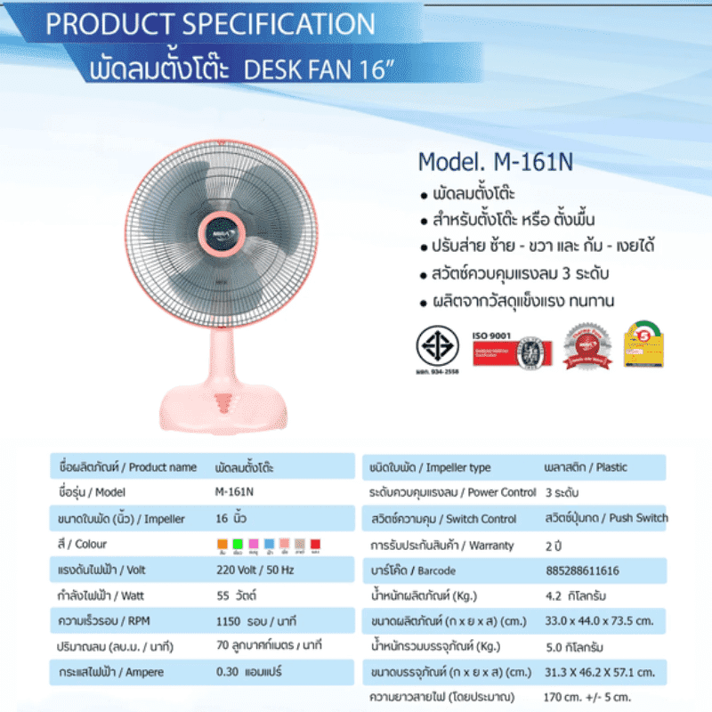 - พัดลมตั้งโต๊ะ Model No. M-161N