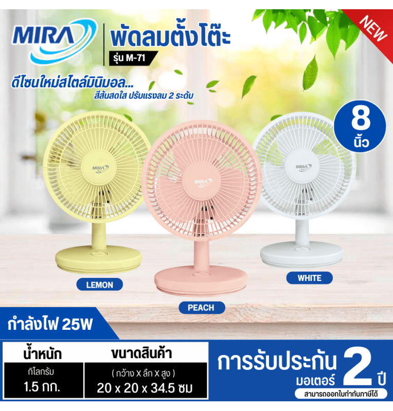 MIRA พัดลมตั้งโต๊ะ ขนาด 8 นิ้ว รุ่น M-71 ขนาดกะทัดรัด รับประกันมอเตอร์ 2 ปี