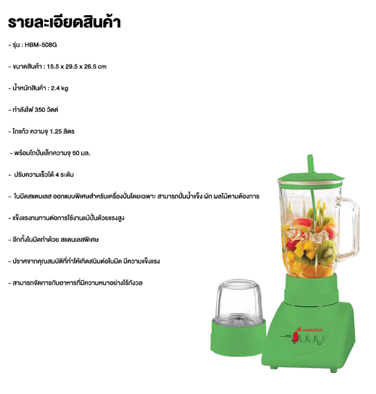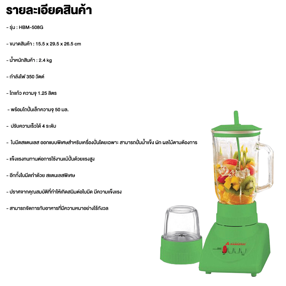 HANABISHI เครื่องปั่นอเนกประสงค์ 1.25 ลิตร รุ่น HBM-508G ปรับความแรงได้ 3 ระดับ