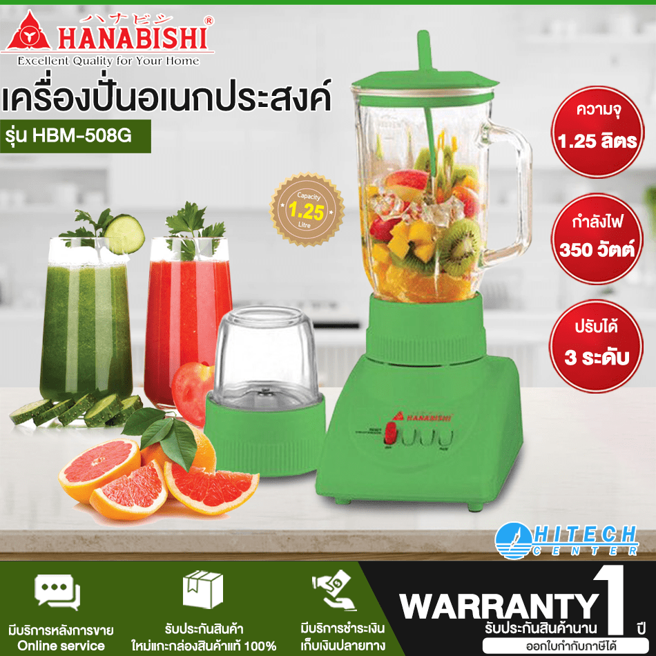 ป้ายกำกับ: HANABISHI เครื่องปั่นอเนกประสงค์ 1.25 ลิตร รุ่น HBM-508G ปรับความแรงได้ 3 ระดับ