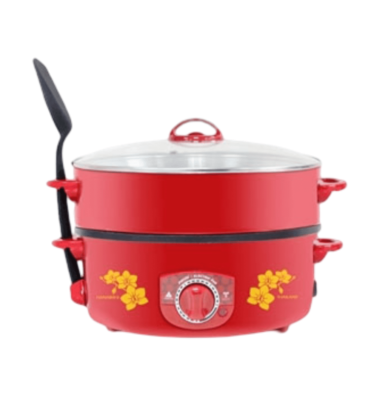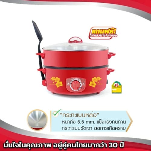 | คุณสมบัติ | กระทะไฟฟ้าพร้อมซึ้งนึ่ง 2 ชั้น กระทะเคลือบเทฟล่อน |