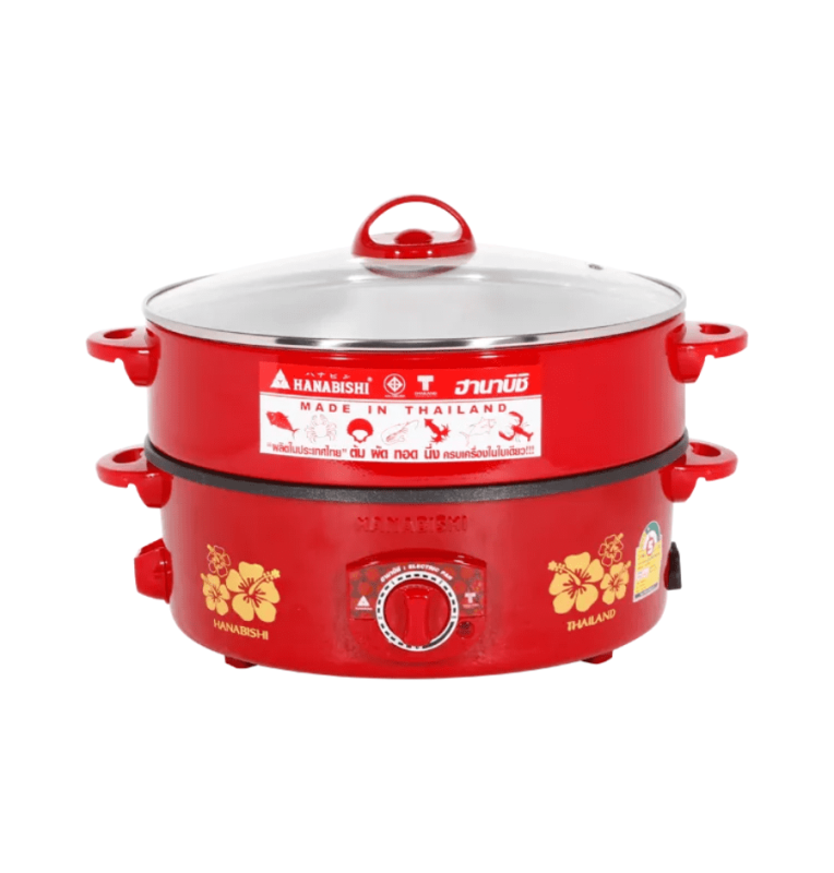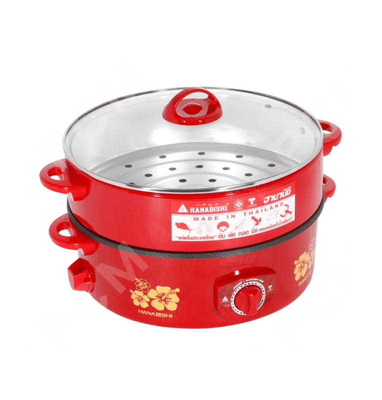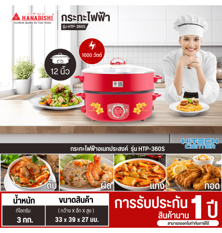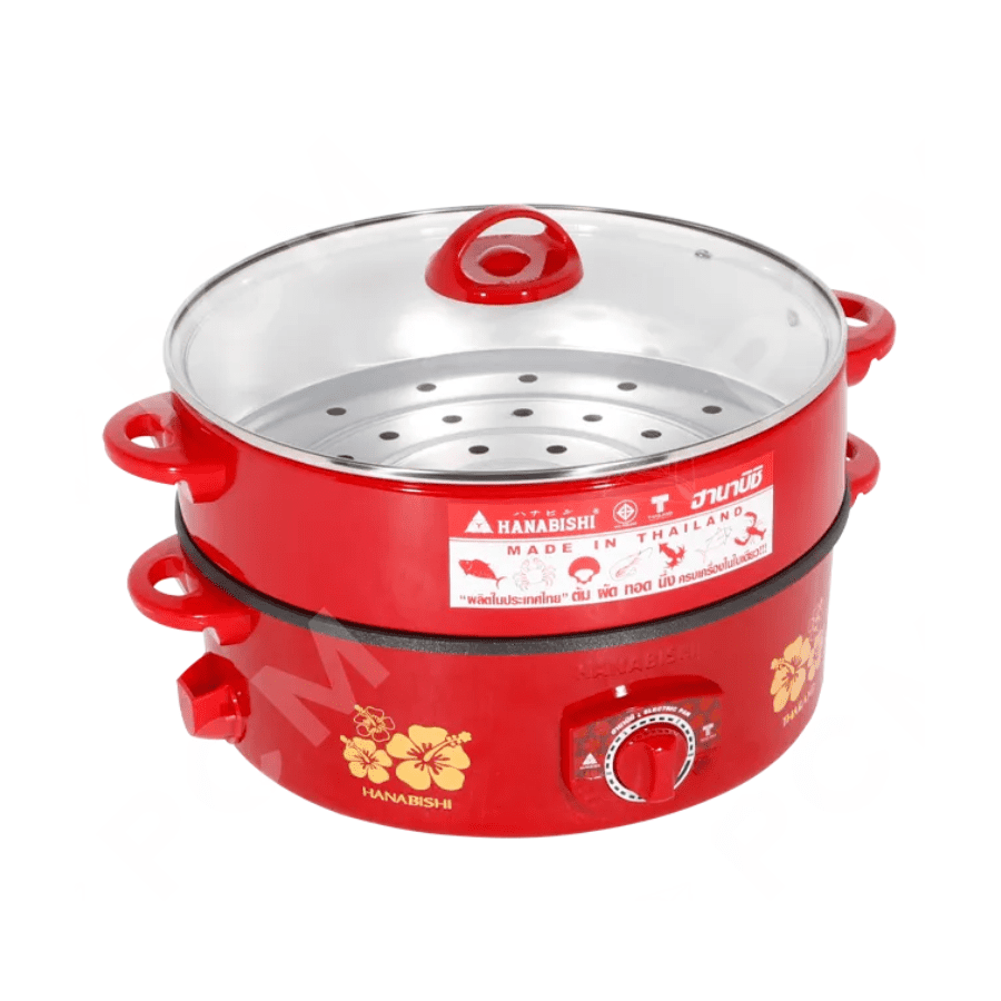 HANABISHI กระทะไฟฟ้า 2 ชั้น มีซึ้งนึ่งฝาแก้ว กระทะเคลือบเทฟลอน กระทะ 12 นิ้ว รุ่น HTP-360S ราคาถูก รับประกัน 1 ปี จัดส่งทั่วไทย เก็บเงินปลายทาง ไฮเทคเซ็นเตอร์