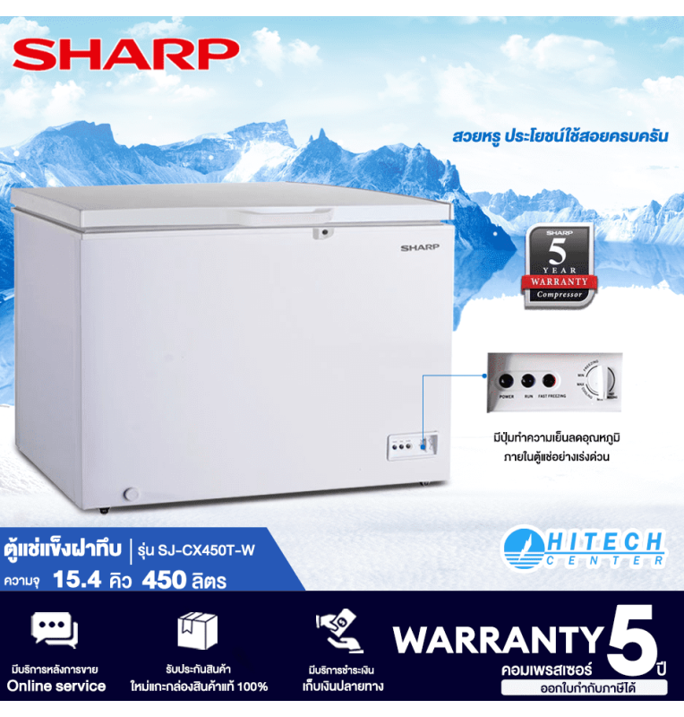 SHARP ตู้แช่แข็ง ตู้แช่เย็น ผ่อนตู้แช่ Freezer ตู้แช่2ระบบ ชาร์ป 15.4 คิว 435 ลิตร รุ่น SJ-CX450T-W ราคาถูก รับประกัน 5 ปี จัดส่งทั่วไทย เก็บเงินปลายทาง ไฮเทคเซ็นเตอร์