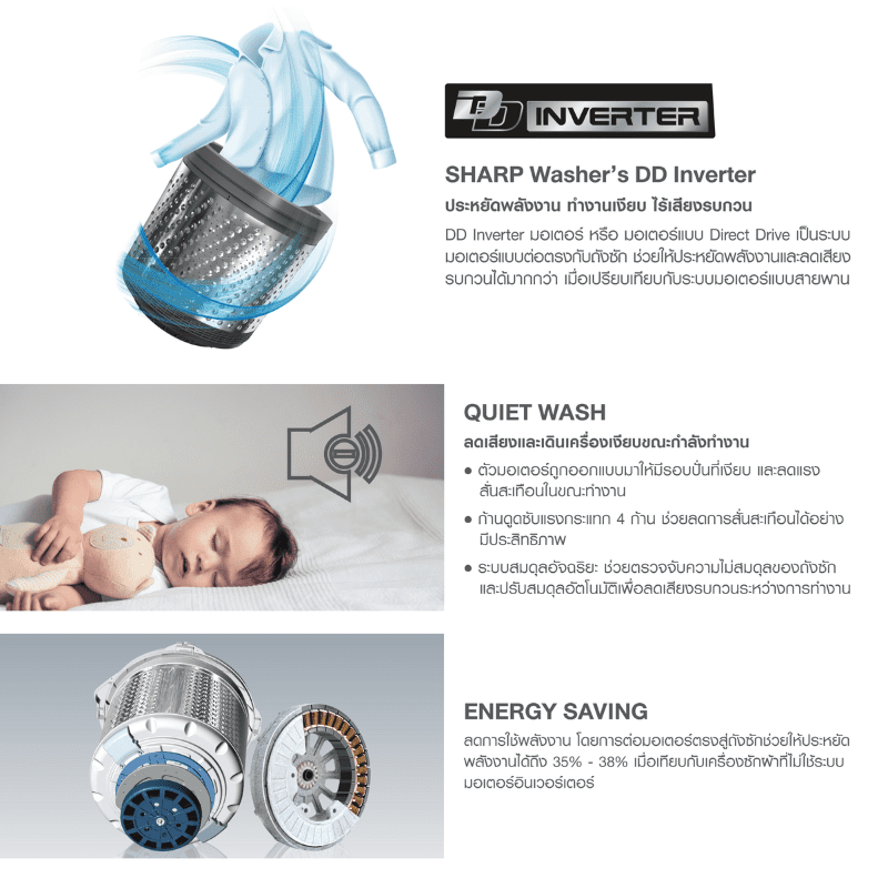 - Motor Direct Drive ประหยัดพลังงาน และลดเสียงรบกวน