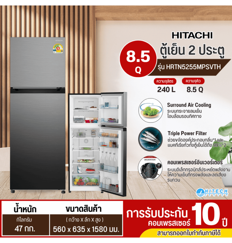 ป้ายกำกับ: HITACHI ตู้เย็น 2 ประตู รุ่น HRTN5255MPSVTH ขนาด 8.5 คิว มีบริการเก็บเงินปลายทาง รับประกันนาน10 ปีสินค้าแท้100%