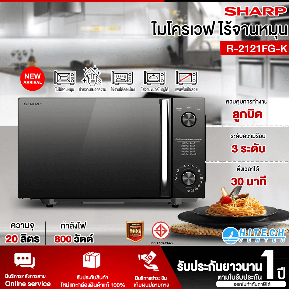 SHARP ไมโครเวฟ เตาอบไมโครเวฟ ชาร์ป ขนาด 20 ลิตร รุ่น R-2121FG-K รับประกัน 1 ปี จัดส่งทั่วไทย เก็บเงินปลายทาง ไฮเทคเซ็นเตอร์