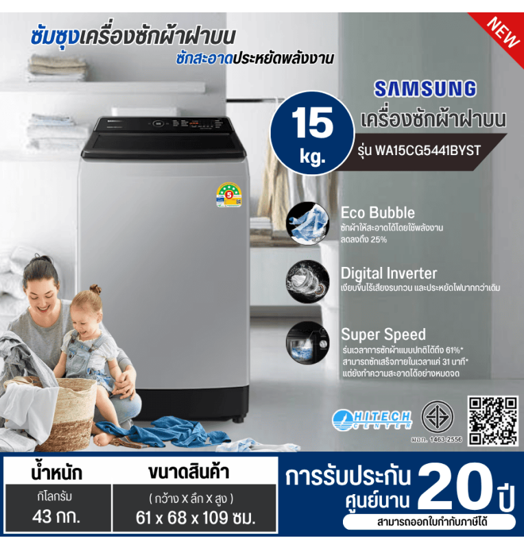 ป้ายกำกับ: SAMSUNG เครื่องซักผ้าฝาบน เครื่องซักผ้า ซัมซุง15 กิโล รุ่นใหม่ WA15CG5441BYST ราคาถูก รับประกันศูนย์ 20 ปี จัดส่งทั่วไทย เก็บเงินปลายทาง สกลนคร