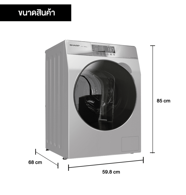 SHARP เครื่องซักผ้าฝาหน้า เครื่องซักผ้า ชาร์ป ขนาด 8.5 กิโลกรัม อินเวอร์เตอร์ รุ่น ES-FK852ET-W รับประกัน 10 ปี จัดส่งทั่วไทย เก็บเงินปลายทาง ไฮเทคเซ็นเตอร์สกลนคร