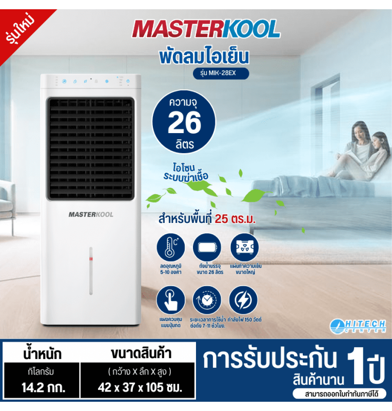 MASTERKOOL พัดลมไอเย็น 26 ลิตร รุ่น MIK-28EX การรับประกันมอเตอร์พัดลม 3ปี | Hitech _Center